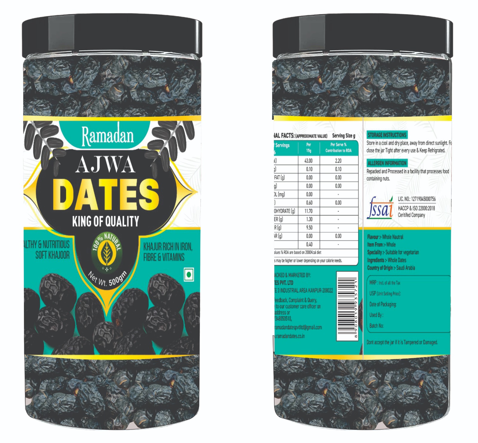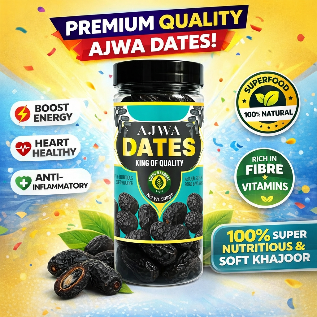 * Ajwa dates or Ajwa khajoor is filled with vital nutrients and minerals which help our body to grow, heal and function normally. The nutritional value of Ajwa dates is a great health benefit.