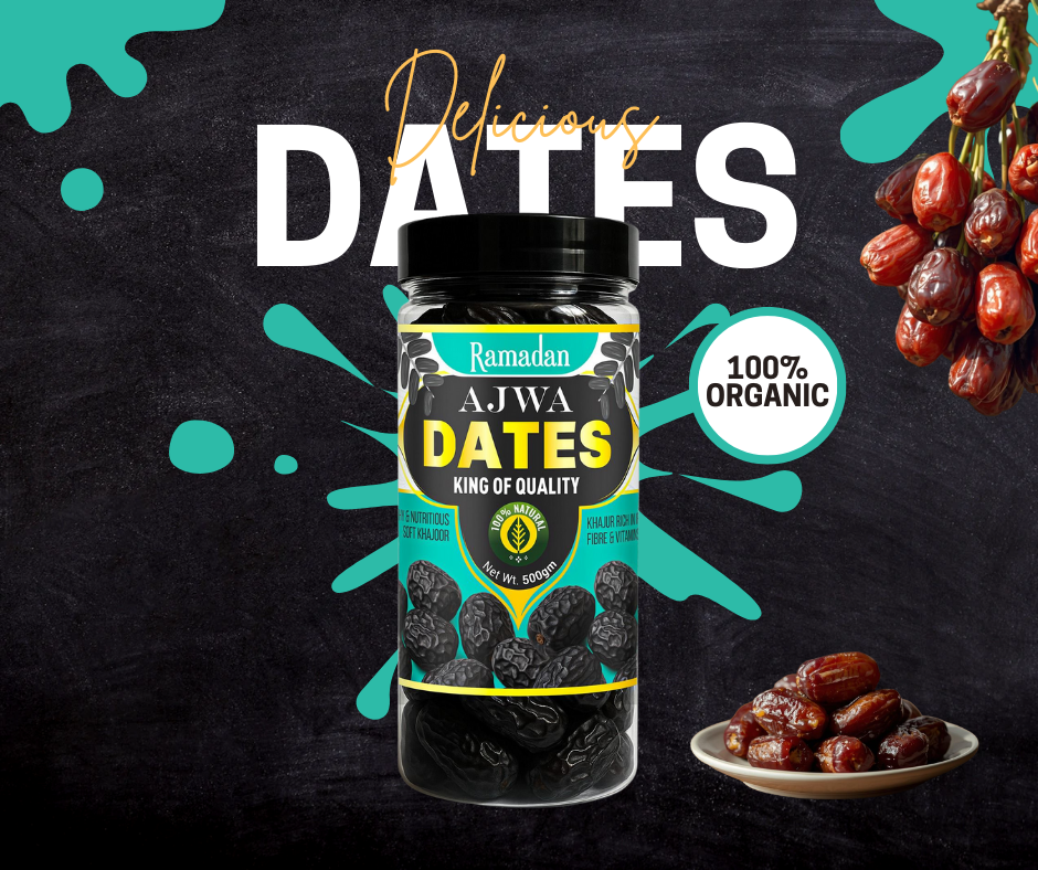 * Mostly commonly consumed with Arabic coffee, Ajwa dates are a great source of fibre that benefits the digestive system. This date variety is one of the best ingredients for muscle development, brain health, and vitality.
