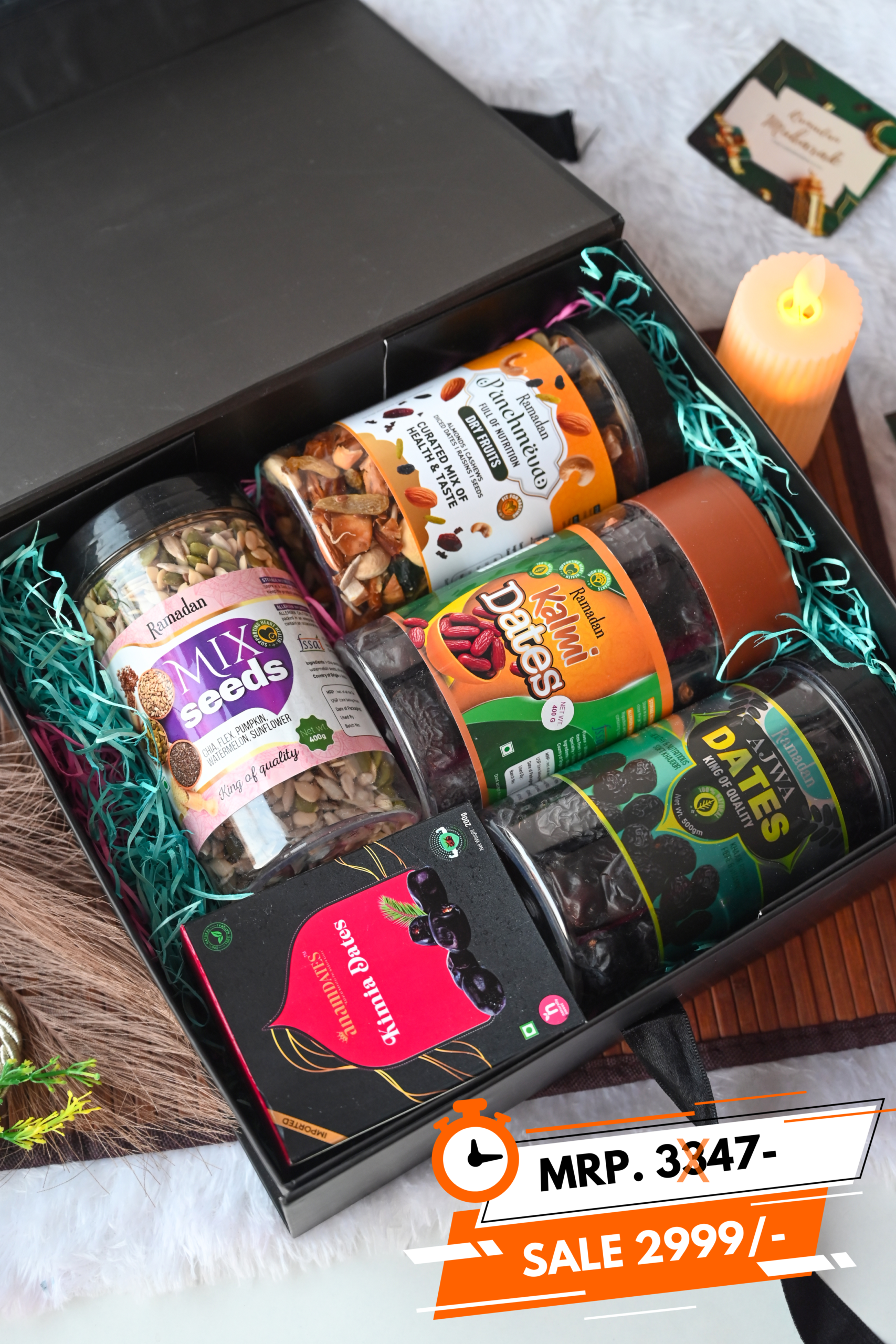 Includes Ajwa Dates, Kalmi Dates, Mix Seeds, Dry Fruits & Ajwa Gift Pack -