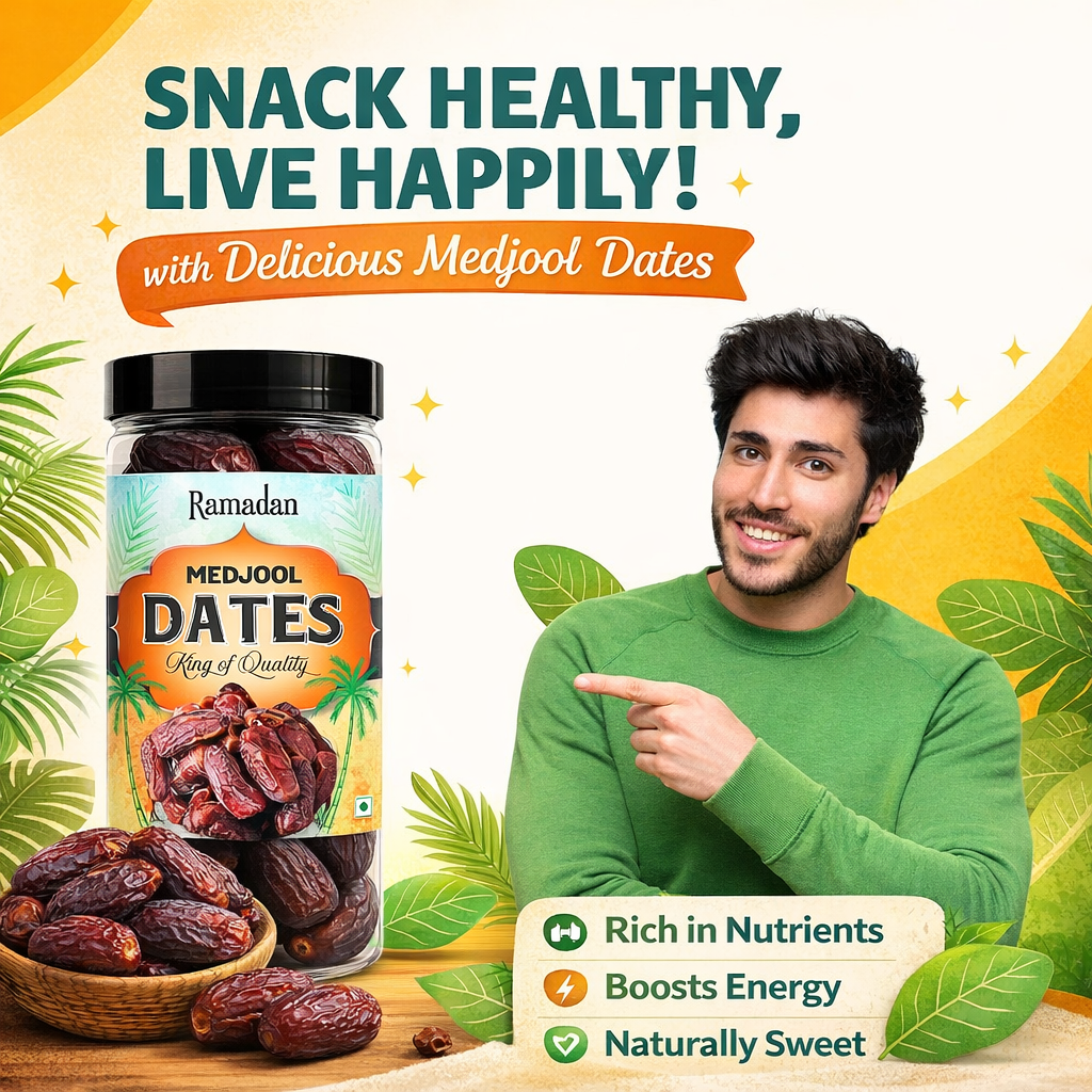 These premium Medjool dates are versatile: Eat them fresh as a guilt-free sweet treat, blend into smoothies or milkshakes for a healthy breakfast, stuff with nuts for energy balls, chop into salads, or use as a natural sweetener in baking and desserts. Start your day with a frothy date milk drink – simply blend whole milk, pitted Medjool dates, and ice for a milkshake-like experience that’s far healthier!