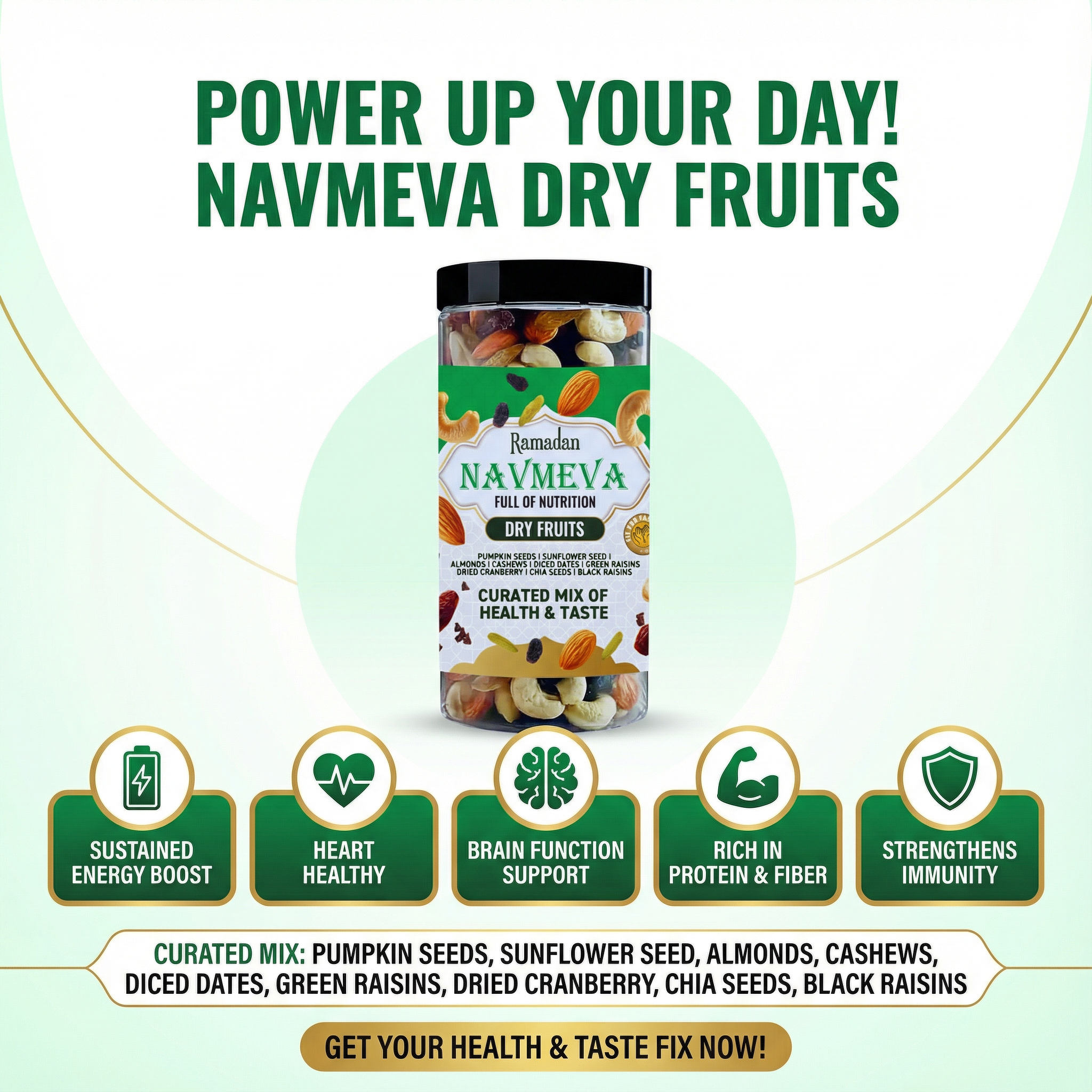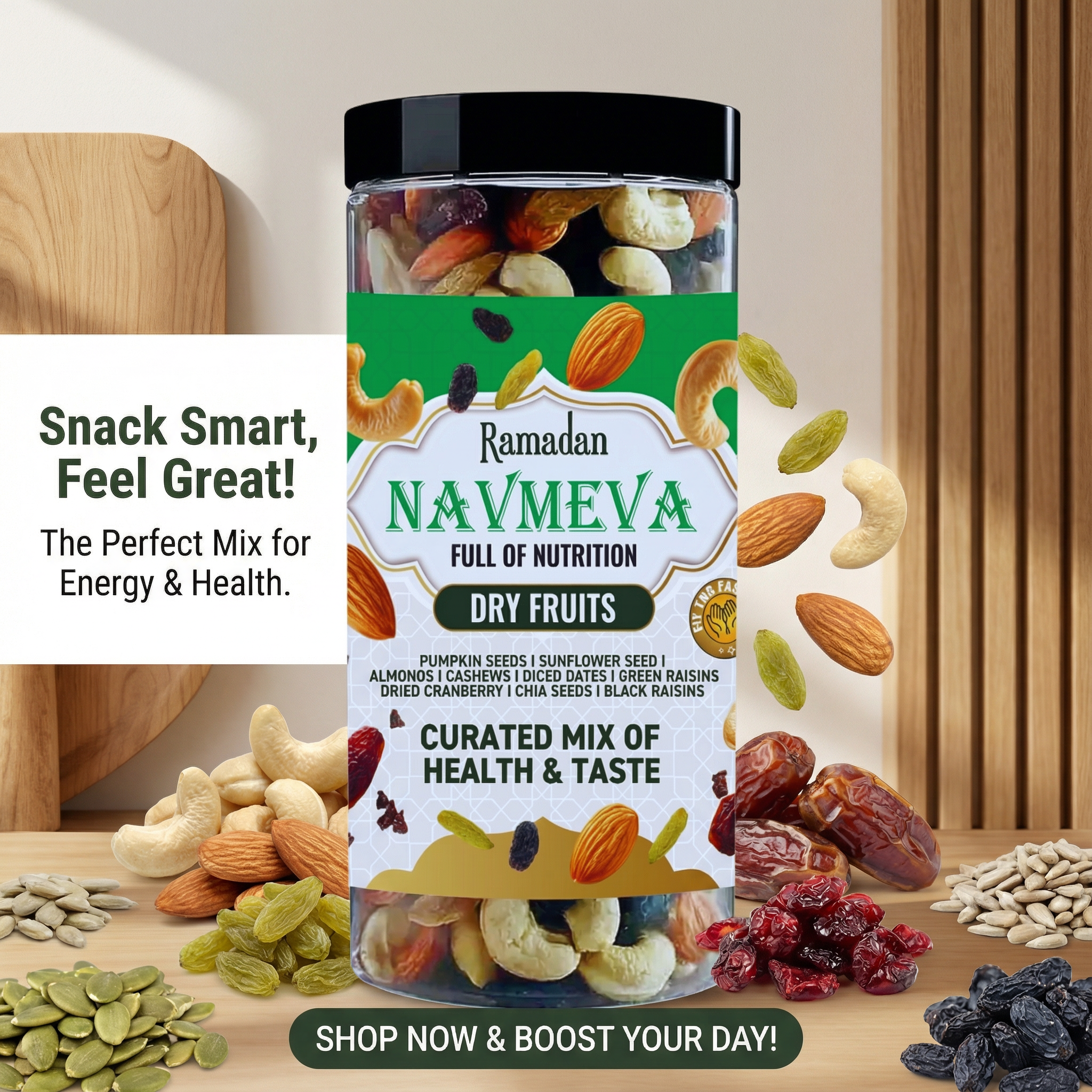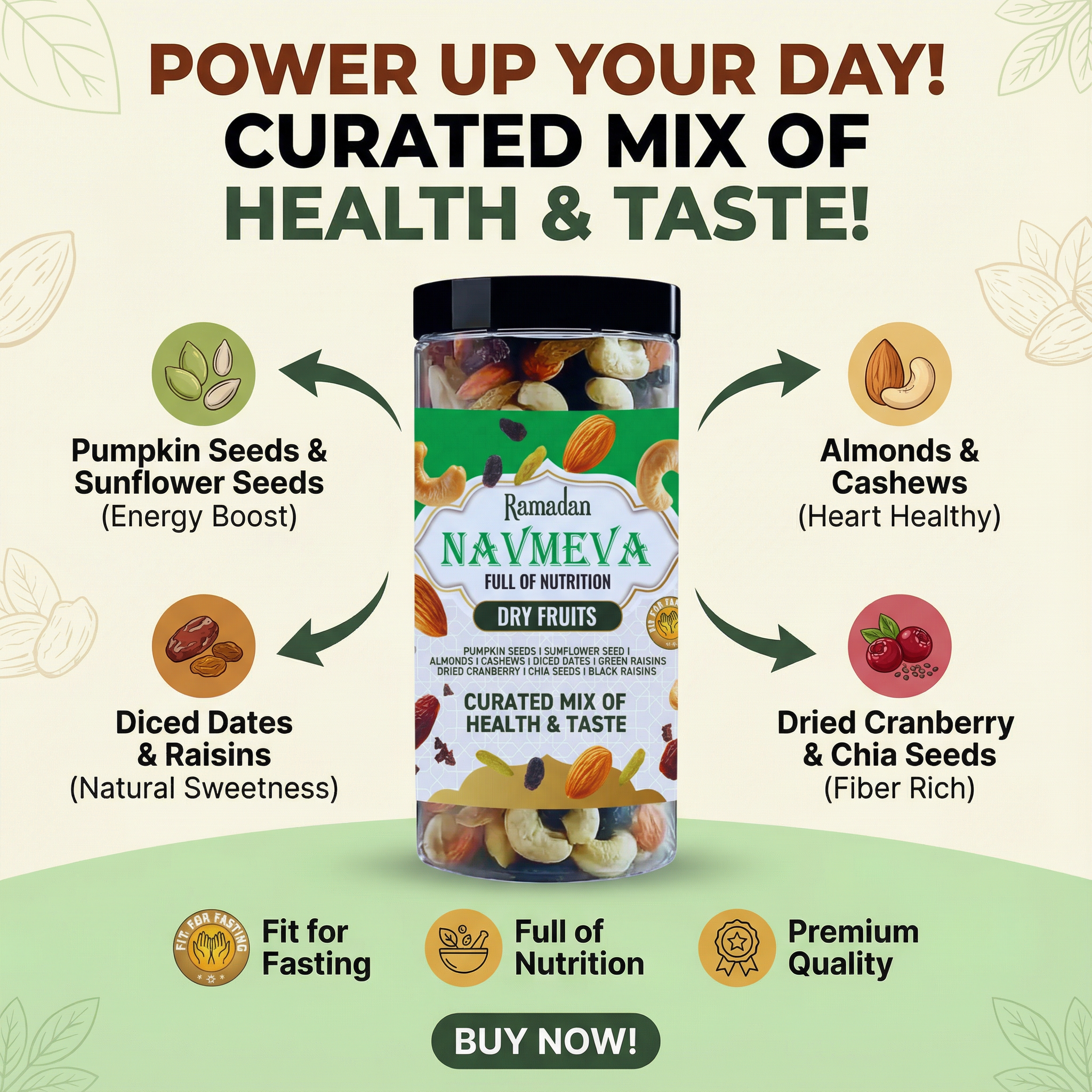 Handpicked Freshness: Premium quality nuts and dried fruits, high in protein and fiber for rich taste and texture.