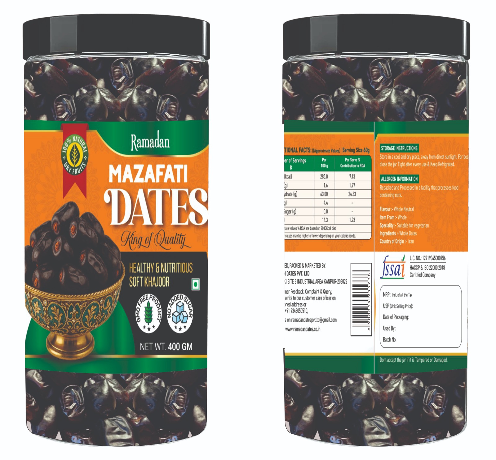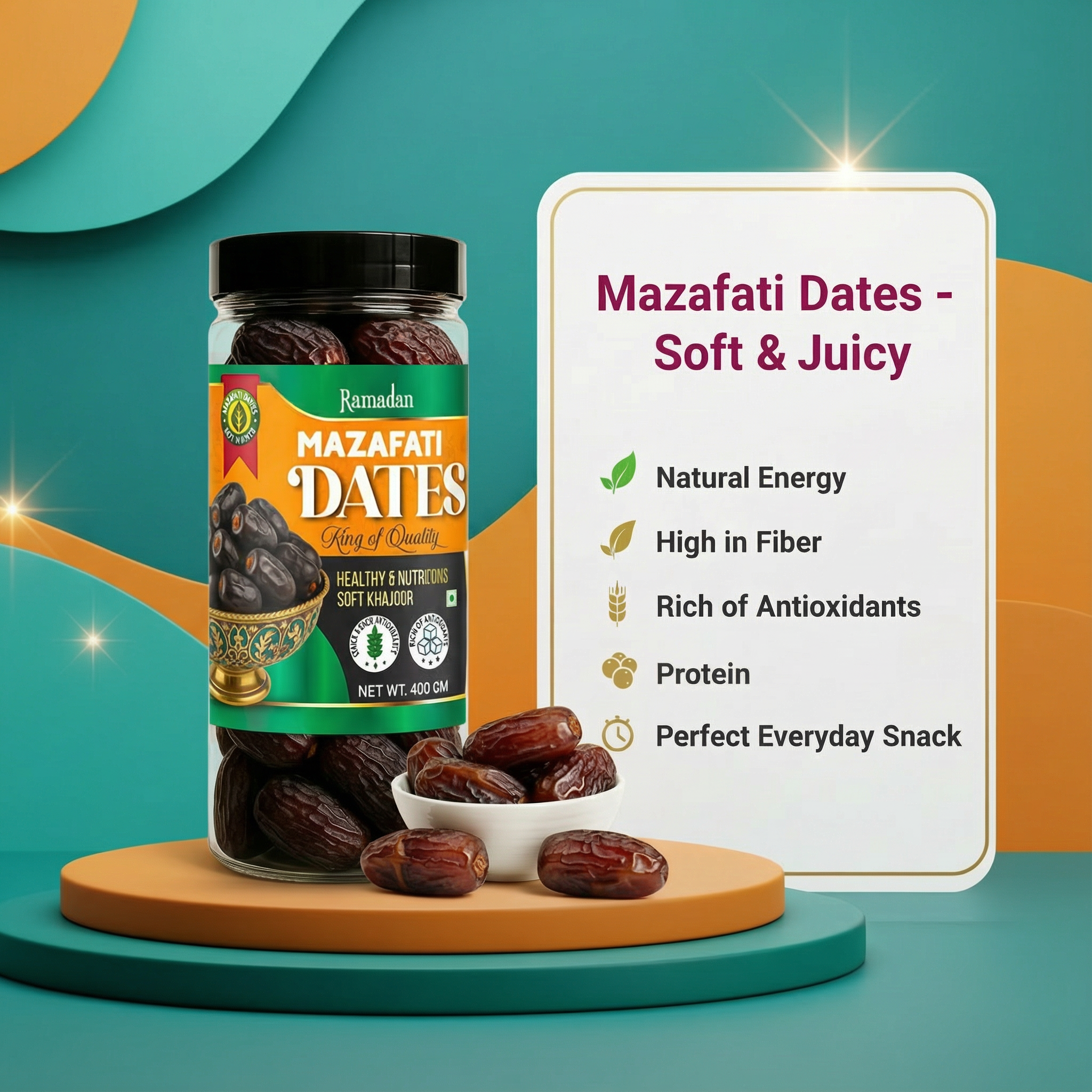 Ramadan Dates 400gm Dry Fruits Mazafati Dates Jar | Healthy & Nutritious Soft Khajoor | Khajur Rich in Iron, Fibre & Vitamin