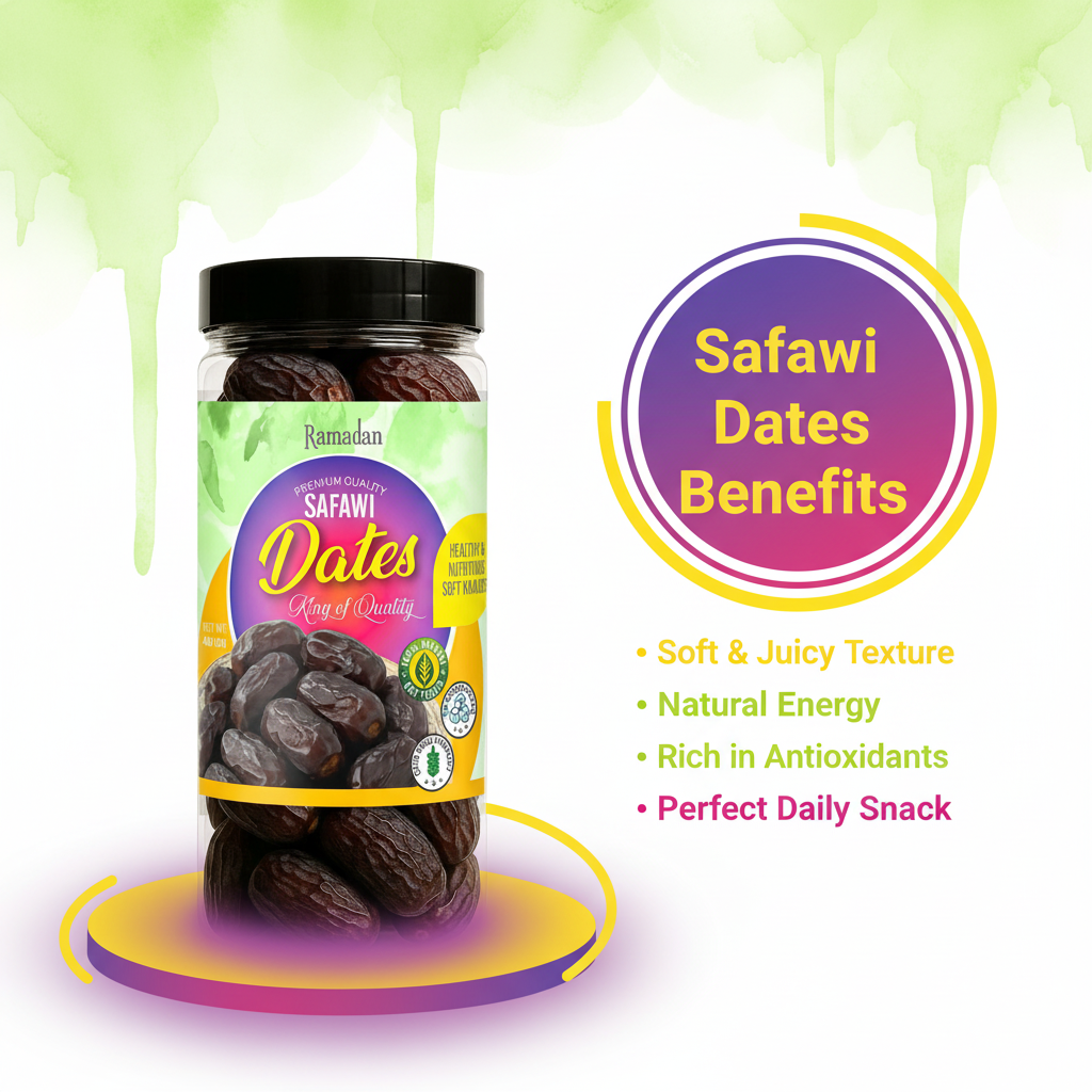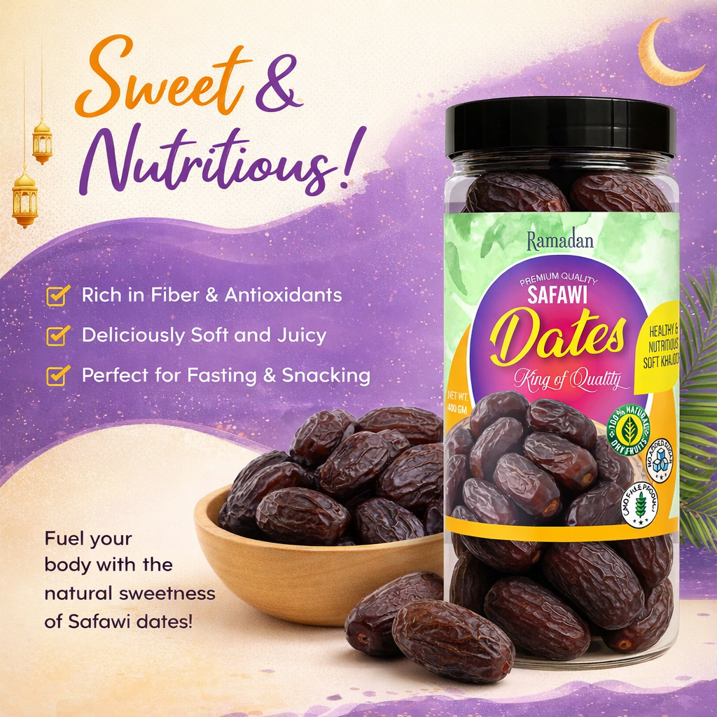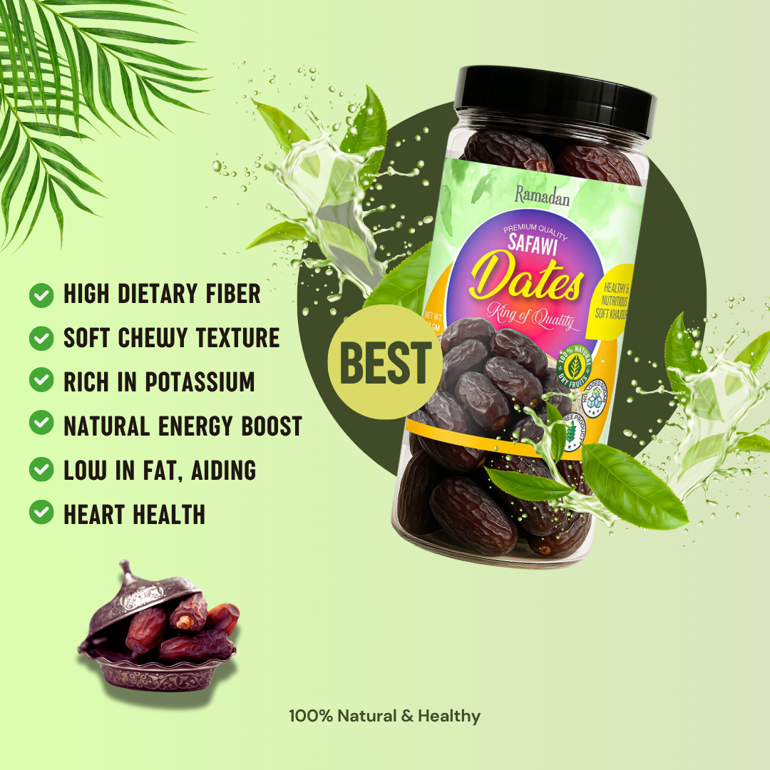 | Antioxidant-Rich: Safawi dates contain natural antioxidants that help protect your body from oxidative stress, boosting your immune system and promoting overall health. |